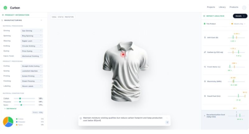 Curbon. La estadounidense Curbon desarrolla una herramienta de decisión basada en IA que integra la evaluación del impacto ambiental en la fase de diseño del producto. Modela las compensaciones entre carbono, agua y costes antes de que comience la producción. (curbon.ai)