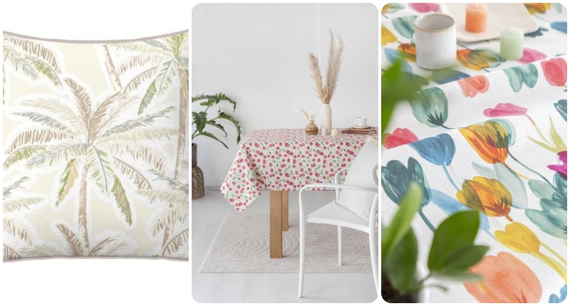 - Nuevos cojines y manteles. Diseños florales y frutales que llenan de color cualquier espacio, perfectos para acompañar las reuniones al aire libre o para dar un toque fresco al hogar.
