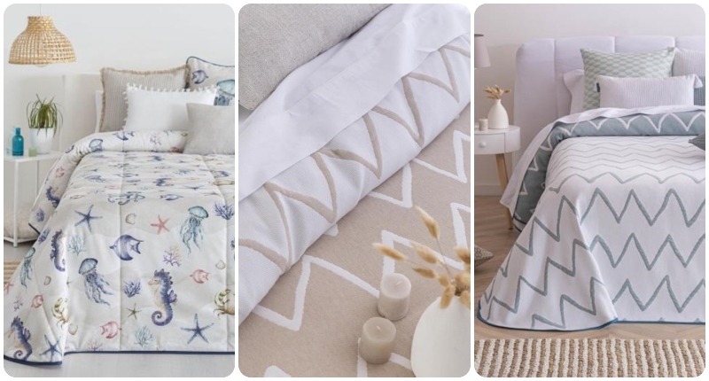- Colchas reversibles en tejido jacquard. Diseñadas para ofrecer dos opciones en una sola prenda. Permite cambiar la decoración del dormitorio con un simple gesto.