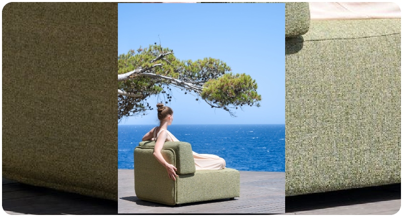 Corda: Inspirado en la cuerda náutica y los atardeceres salinos, Corda entrelaza fuerza, tradición y calma. Un tejido pensado para exteriores con personalidad, donde la resistencia convive con la estética mediterránea.