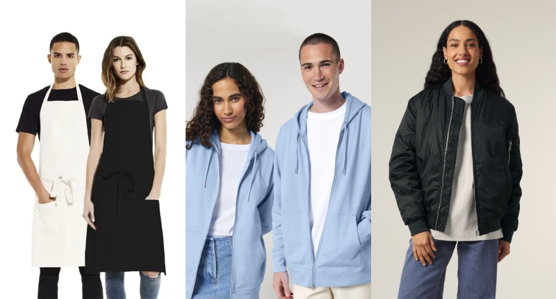El resto de su catálogo incluye diferentes prendas de ropa ecológicas: polos, sudaderas, chaquetas y más. Como en el resto de su colección textil, trabajan con algodón orgánico certificado, materiales reciclados y tintas ecológicas, con personalización disponible en toda la gama.