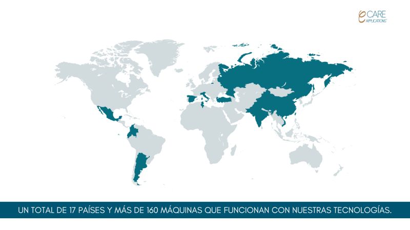 Care Applications cuenta con presencia internacional en 17 países: Italia, India, China, Rusia, Argentina, San Marino, Túnez, España, Colombia, Pakistán, México, Vietnam, Bangladesh, Ecuador, Turquía, Perú y Portugal. Actualmente, más de 160 máquinas en todo el mundo operan con nuestras tecnologías, promoviendo procesos textiles más éticos, eficientes y económicos.