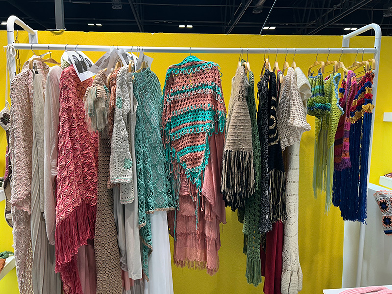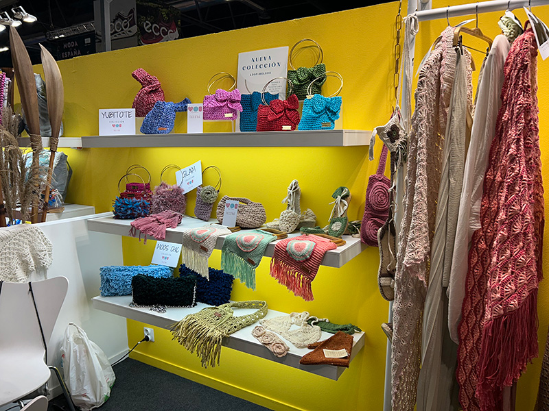 «Todas nuestras prendas están hechas a mano, son exclusivas y únicas, pensadas para tiendas especiales, de esas con encanto, que valoran este tipo de producto artesanal«, ha apuntado Yolanda, responsable de la firma, destacando los chales como una de las piezas más demandadas de su escaparate.